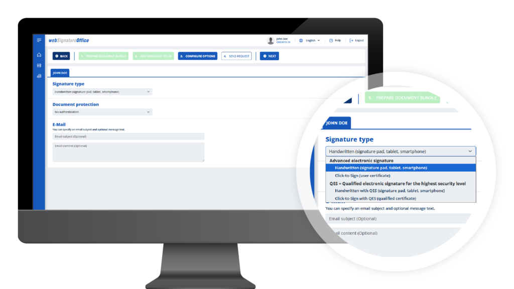 Mit webSignatureOffice können Sie je nach Anwendungsszenario Dokumente sowohl fortgeschritten als auch qualifiziert elektronisch unterschreiben. Sie haben die Wahl.
